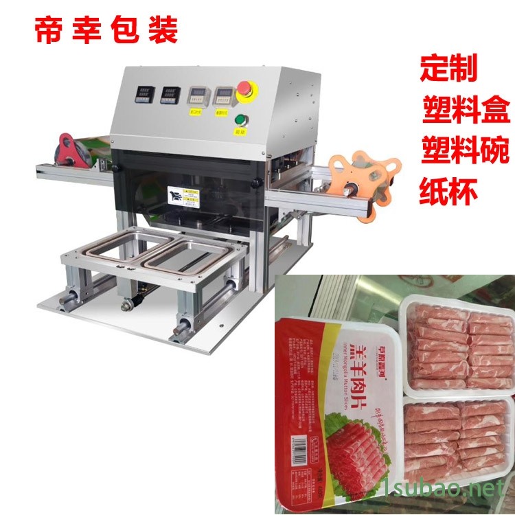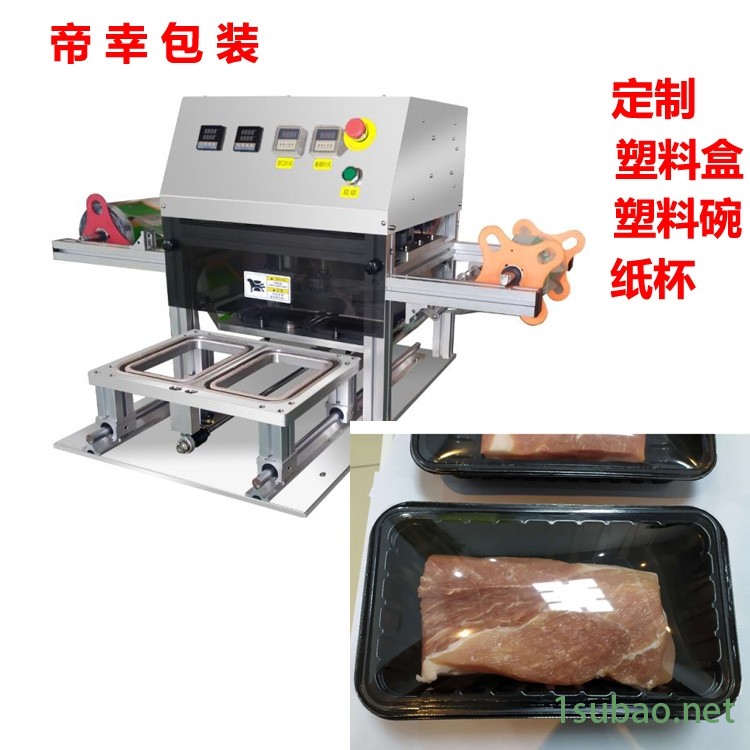 定制自动塑料盒封口机小方盒封膜机封盖机年糕食品封口机,帝幸包装[工厂定制],各种杯装、碗装、盒装、瓶罐、软管、桶装及其他异型装封口机,按需求定制封口机,[交期短3-7天]。采用数控设备加工模具,不锈钢机箱,! 密封要好 封口线条均匀 切边小,不鼓包等优点生产出来的产品美观,提升档次。