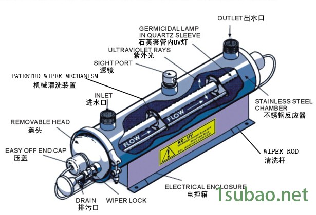 适用行业:KCF系列(管道封闭式)主要应用领域包括市政供水、地表水(井水、河水、湖水等)、工业用水(电子、医药、食品饮料)、泳池用水、景观水、循环冷却水、船舶用水、海水淡化、小流量的给水消毒等。产品特点:管道封闭式消毒器一般适用于中、小水量处理或有必要施加压力且消毒器不能在明渠中使用的情况。各种系统中外置密封石英套管的紫外线灯管都可以与水流方向垂直或平行布置。平行系统水力损失小、水流形式均匀,而垂直系统则可以使水流移动,提高消毒效率。 产品优势: