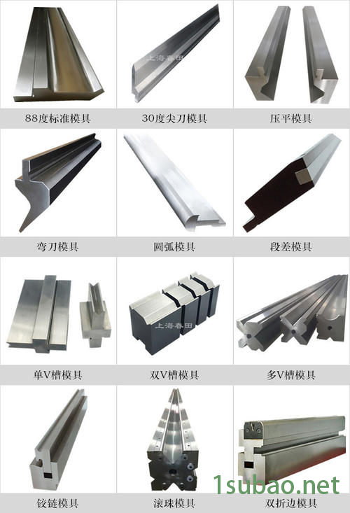折弯机模具是钣金折弯成型加工板料的工具,标准模具是有现货供应,非标准模具可根据客户提供的产品规格与图纸及材料以及HRC值等要求定制加工。还可以根据产品要求制作模具不同的角度设计。模具材料一般可选用模具钢T8T、T10、42CrMo、42CrMoV、冷作模具钢材料采用C12rMoV制作,模具整体高温热处理淬火,经过生产工艺精密加工制作模具灵巧好用、耐磨性能好、强度高、韧性好、耐高温、折弯精度准确。模具广泛用于冶金、汽车配件、五金机械、电器、精密铸件、橡胶等行业使用。