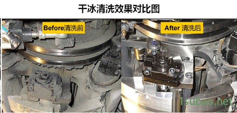 干冰颗粒与沙粒、核桃壳、塑料粒和其他磨损性介质不同。由于干冰颗粒不具有磨损性,所以采用干冰清洗机作业不会损伤磨具,不会破坏公差,对轴承和机械都不会造成损伤。而且,还可以避免在线清洗模具拆装过程中的意外损伤。